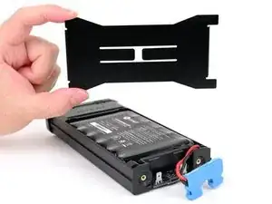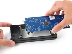 Вставьте сторону шасси с разъёмом аккумулятора в торец корпуса, ближайший к подставке, и задвиньте его на место.