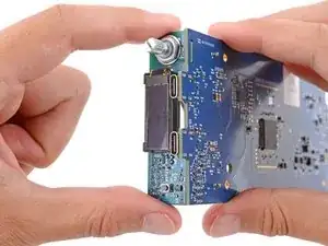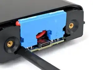 Аккуратно подденьте основную плату вокруг порта USB‑C пальцем, чтобы можно было захватить её края.