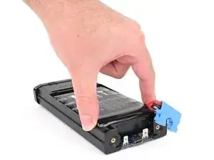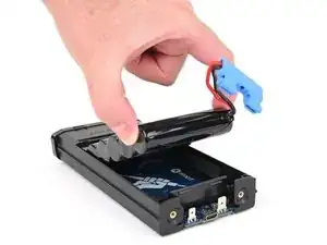 Повторяйте процесс и попеременно поддёргивайте стороны разъёма аккумулятора, чтобы «пройти» его с двух штырей, пока вы не сможете удобно взять его пальцами.