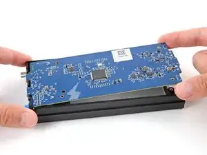 Положите пальцы на отверстия для винтов задней крышки и слегка выдвиньте шасси из корпуса.