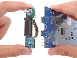 Поднимите плату строго вверх и отведите её от дисплея, одновременно протягивая ручку селектора через её вырез, чтобы снять плату.