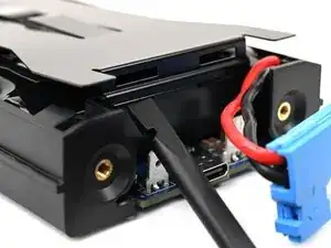 Возможно, придётся перенаправить лопатку, чтобы полностью освободить разъём аккумулятора. Будьте осторожны, чтобы не повредить плату при поддевании.