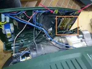 Ошибка с управлением скоростью часто возникает у данной машины. К сожалению, плата управления заклеена. Поэтому можно заменить только полную плату примерно за 37 евро. Но для этого не требуется много предварительных знаний.