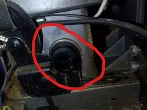 Чтобы добраться до одного из черных кабелей, также необходимо снять правую сторону корпуса. Для этого нужно открыть винт для оси регулировки высоты и вынуть ось. ВНИМАНИЕ: Держите шестерню посередине и следите за маленьким элонгированным драйвером.