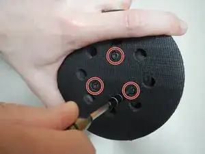 Поверните отвертку против часовой стрелки, чтобы ослабить все три винта на дисковой подушке.