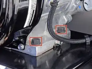 Используйте ключ на 19 мм, чтобы ослабить четыре болта, крепящих двигатель к раме.