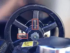 Используйте ключ-шестигранник, чтобы ослабить два винта фиксации шкива.