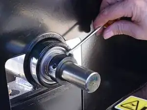 Используйте отвёртку, чтобы поддеть и ослабить стопорную втулку на валу.