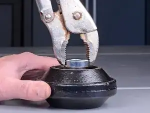 Если возникают трудности, возможно, лучше подойдёт двухчелюстной съемник шестерен или прямолинейный выпрессовщик штифтов. При использовании съемника может потребоваться зафиксировать сторону с захватом съемника с помощью упора, который не будет сдавлен при выдавливании штифта. Головка на 3/4 дюйма подходит для этой цели.