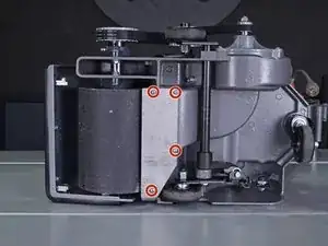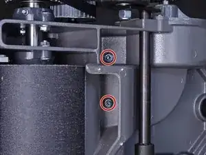 При сборке верните мотор в исходное положение перед затяжкой четырёх крепёжных гаек мотора. Убедитесь, что оба ремня правильно расположены и имеют необходимое натяжение, прежде чем устанавливать защиту ремня обратно.