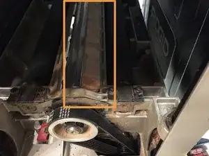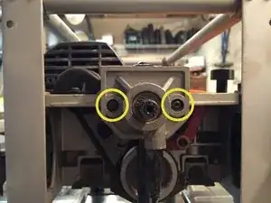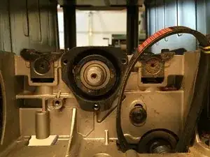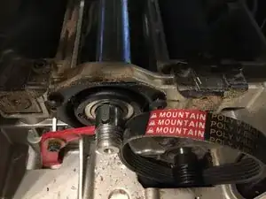 Подъёмный механизм со стороны кривошипа необходимо снять, чтобы получить доступ к приводному шкиву.