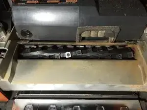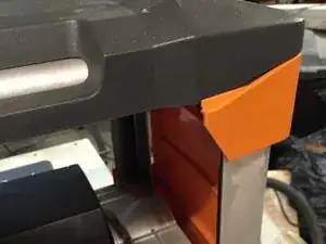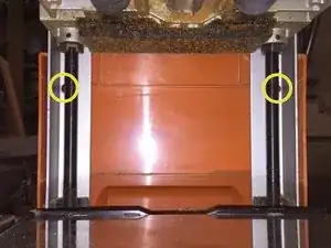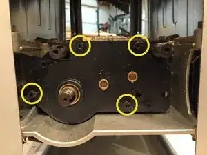 Снимите четыре винта с крестообразной головкой с каждой боковой крышки. Они расположены за стойками рамы. Два верхних находятся рядом с верхом. Поднимите узел резца вверх, чтобы добраться до нижних винтов. После снятия опустите его обратно к середине каркаса.