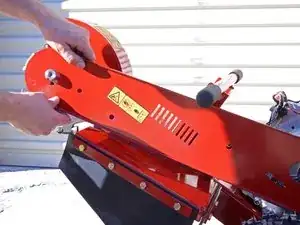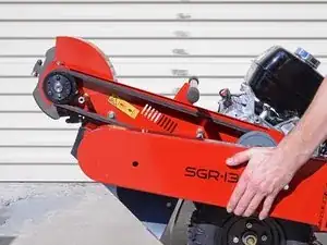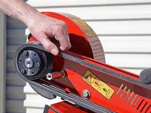 Сдвиньте двигатель в сторону режущего диска, чтобы ослабить приводной ремень.