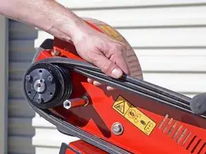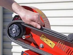 Поднимите приводной ремень вверх и в сторону от машины, одновременно подматывая его к режущей головке, чтобы постепенно снять его с шкива.
