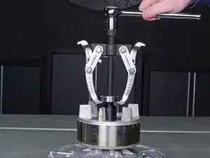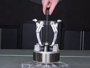 Подключите ноги съёмника к внешним нижним краям подшипника и вручную затяните болт, пока съёмник не станет плотно на подшипнике.