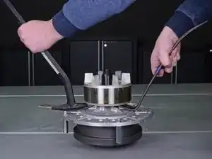 Приложите силу к обоим ломикам в противоположных направлениях, чтобы отключить ротор от сборки редуктора.