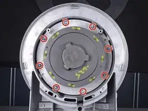 Удалите восемь винтов Philips #3 длиной 23,1 мм, крепящих сборку редуктора и ротор к корпусу полуавтомата.