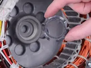Используйте два ломика и разместите их концы между ротором и сборкой редуктора как можно ближе к центру.