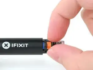 Используя отвёртку с крестообразным наконечником, выкрутите три синих винта длиной 3,4 мм, крепящих синий концевой колпачок.