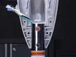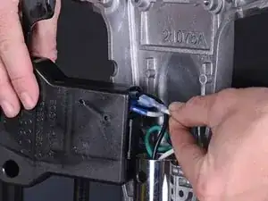 Используйте шестигранный ключ 4 мм, чтобы удалить два винта длиной 13,8 мм, закрепляющих зелёные заземляющие провода в корпусе рукояти.