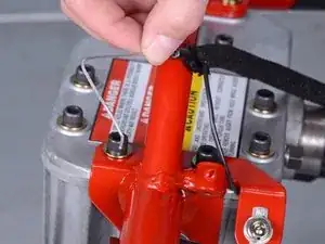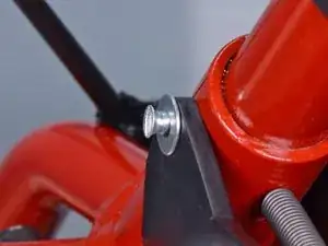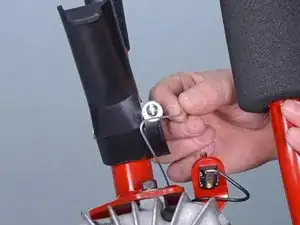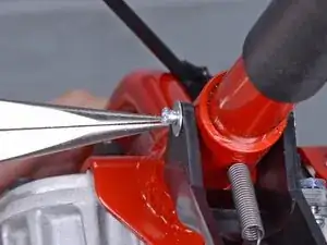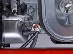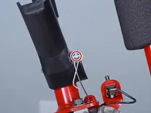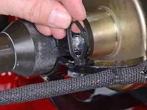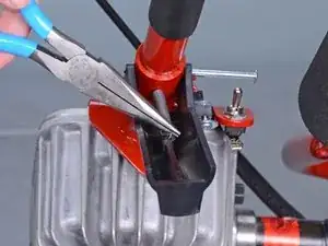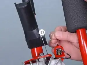 Ослабьте красный винт, зажимающий трос дросселя в держателе на ручке.