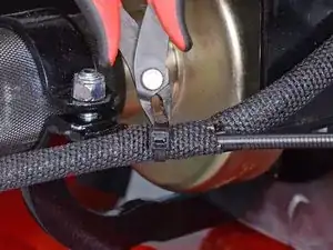 Используйте резаки вровень, чтобы перерезать стяжку, фиксирующую трос дросселя к шнеку, и снимите её.
