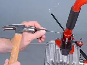 Используйте выколотку и молоток, чтобы выбить заклёпку из ручки.