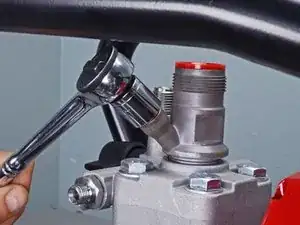 Используйте головку на 17 мм, чтобы ослабить сборку втулки клапана входа.