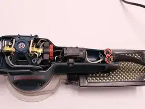 С помощью отвертки Torx T20 удалите два винта 15,6 мм, крепящие кабельный зажим к блоку двигателя.