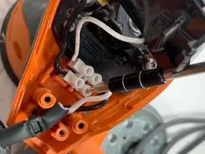 Ослабьте винты в белом клеммнике маленькой плоской отверткой. Обратите внимание, что их не нужно полностью выкручивать и удалять.