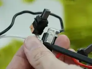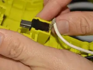Удалите два винта Phillips #2 длиной 14 мм с зажима кабеля.