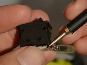 С помощью лопатки снимите чёрный провод с переключателя питания.