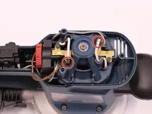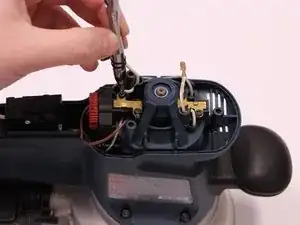 С помощью отвертки Torx T10 открутите четыре винта длиной 9,7 мм, крепящих щетки мотора к корпусу.