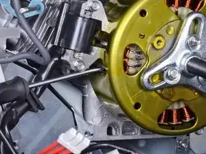 Используйте крестовую отвёртку, чтобы вывернуть винт, удерживающий крышку свечи зажигания.