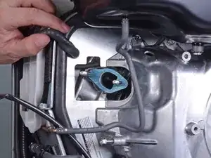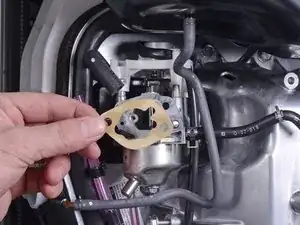Если прокладка теплоизолятора карбюратора изношена, снимите и замените её.