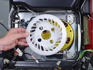 Крышка вентилятора плотно прилегает. При извлечении может потребоваться слегка приподнять топливный бак.
