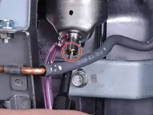 При отсоединении этого шланга может пролиться топливо. Будьте готовы поймать возможные подтёки.