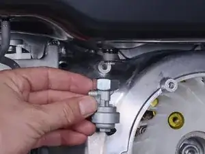 Используйте разводной ключ большого размера, чтобы ослабить топливный краник на топливном баке.