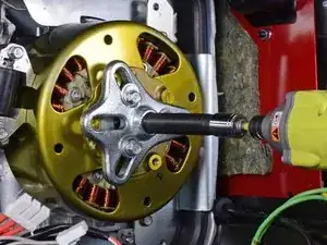 Используйте торцевой ключ на 19 мм, чтобы открутить гайку, крепящую ротор к валу генератора.