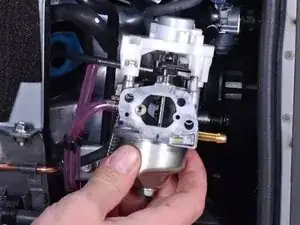 Поместите ёмкость под сливную трубку карбюратора, чтобы собрать излишки топлива.