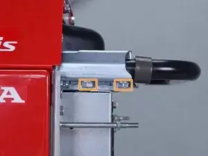 Используйте головку на 10 мм, чтобы открутить четыре болта, крепящих ручку к раме.