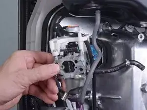 Отсоедините разъём управления дроссельной заслонкой, расположенный сверху карбюратора.