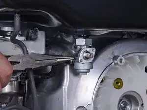 Используйте торцевой ключ на 10 мм, чтобы открутить два болта, крепящих катушку зажигания.