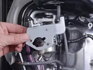 Используйте плоскогубцы, чтобы поднять и отключить трос заслонки от фиксатора заслонки.