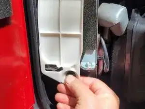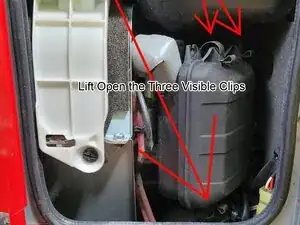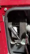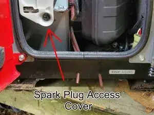 Поверните винт крышки доступа к свече зажигания, затем снимите крышку снизу и потяните вниз. На задней верхней части крышки имеется встроенная скоба, которая фиксируется под креплением