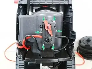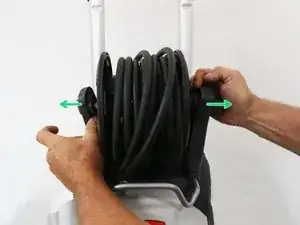 Открутите винт, указанный стрелкой, чтобы освободить подшипник от барабана и снять напорный шланг насоса.