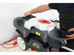 Наклоните устройство вперёд, чтобы получить доступ к последним 2 крепёжным винтам, расположенным под изделием и отмеченным стрелками.