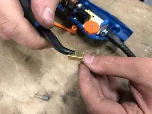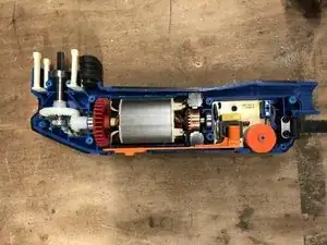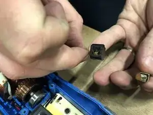 В этом руководстве показана замена только одной угольной щётки; чтобы заменить вторую, выполните те же операции в том же порядке.