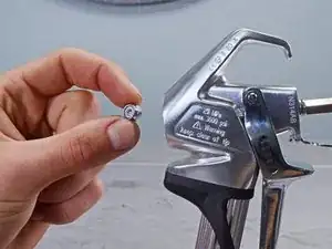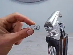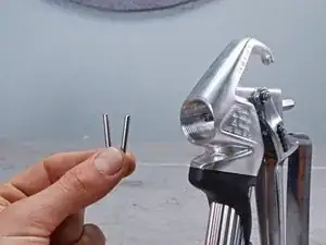 Используйте пальцы или инструмент-захват, чтобы вынуть пластину втягивателя и её два направляющих штифта из распылителя.
