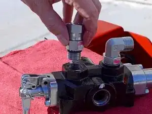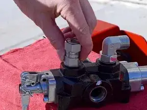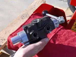 Подставьте ведро под устройство, под управляющим клапаном, чтобы поймать капающую гидравлическую жидкость.